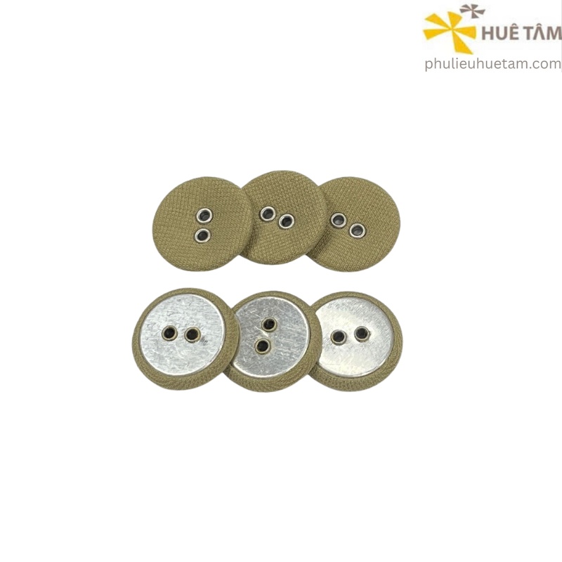 Nút bọc vải tại Huê Tâm được sản xuất theo tiêu chuẩn phụ liệu may mặc cao cấp, đảm bảo kích thước chuẩn xác đến từng milimet và phù hợp cho đa dạng dòng sản phẩm: vest, áo dài, áo kiểu, đầm dạ hội, đồng phục nhà hàng – khách sạn…